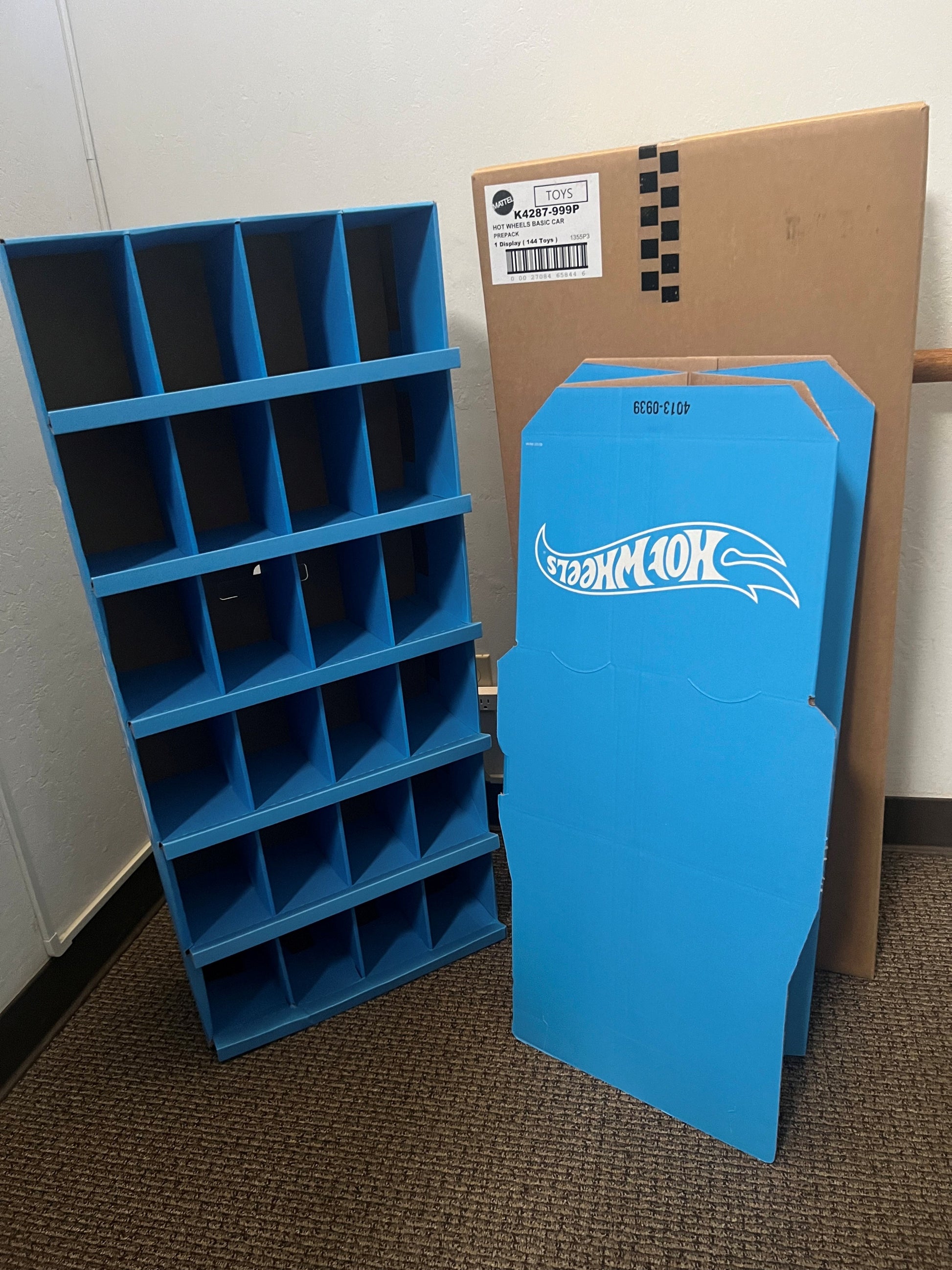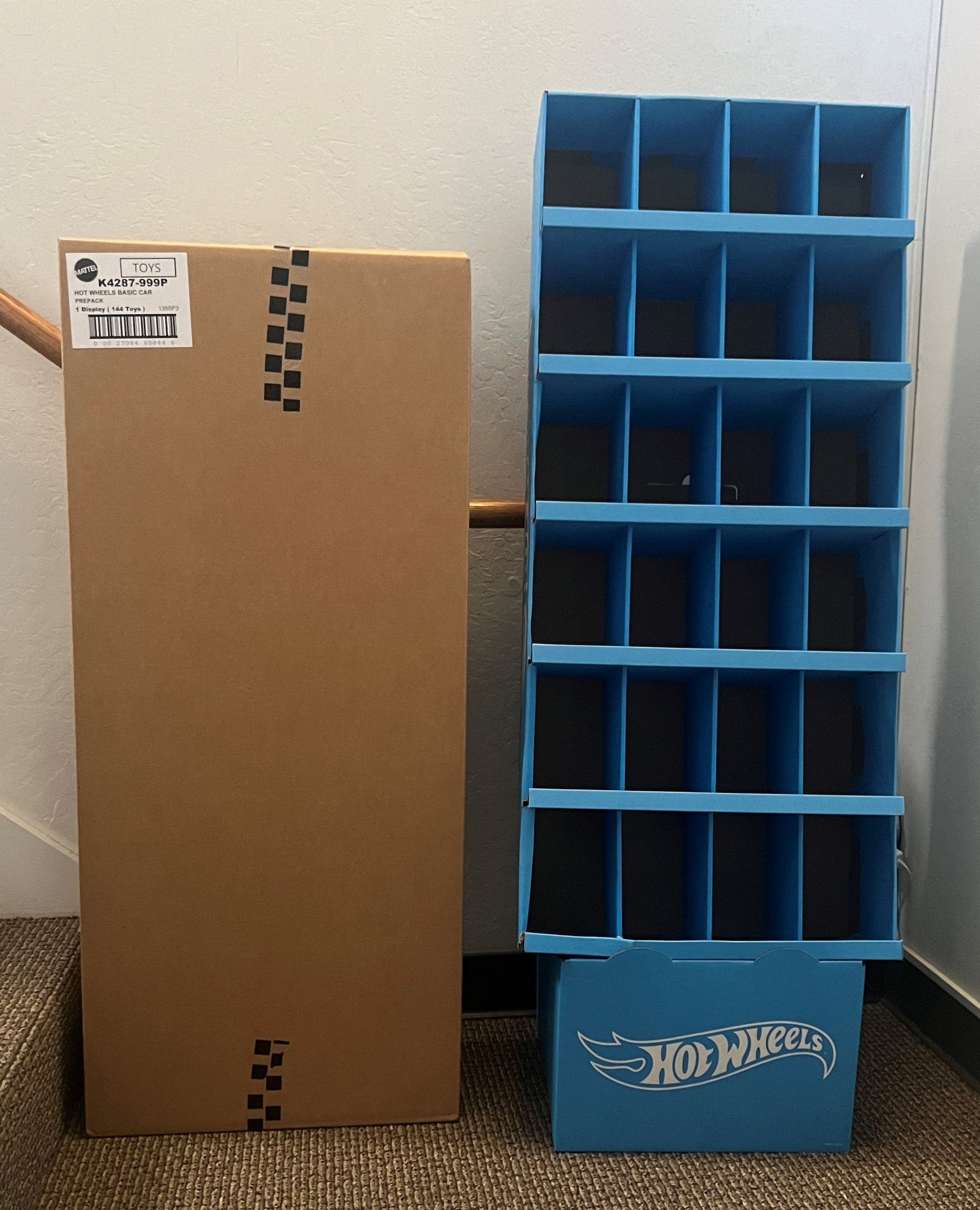 Hot Wheels 144 Car Stand Up Store Display Blue Cardboard Shipper with original Shipping Box.